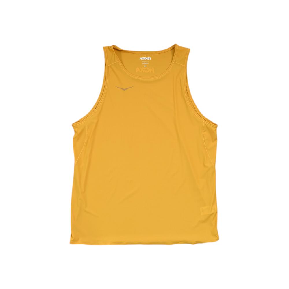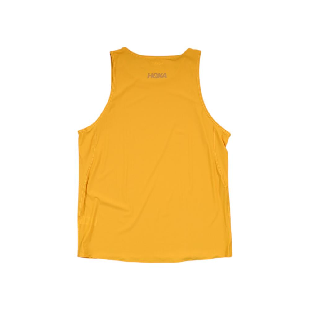 This Hoka Men's Running Tank Top Shirt delivers the lightweight, breathable performance that Hoka is known for. Featuring a vibrant yellow colorway that enhances visibility on the road or trail, this tank is built for high-output activities where moisture management and freedom of movement are essential.